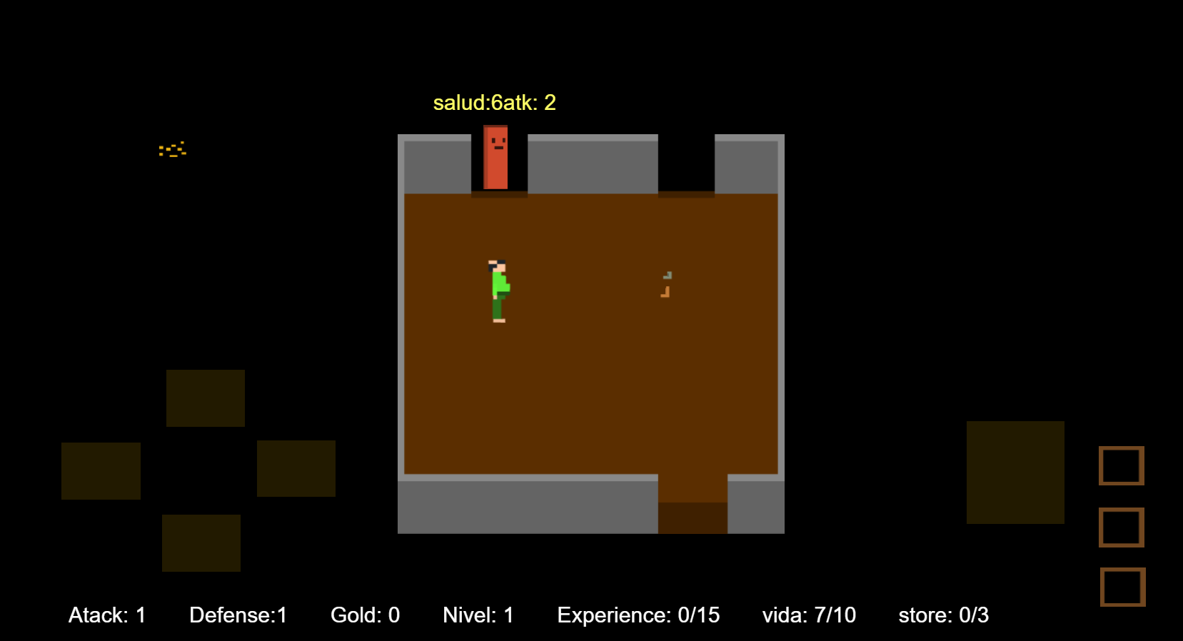 Probando lo que se puede hacer en contruct 2, sistema de nivel de personaje, experiencia, vida maxima, inventario básico, que los items equipados aumenten atk o defensa según sea el caso, moverse por lugares, controles para versión mobil.
